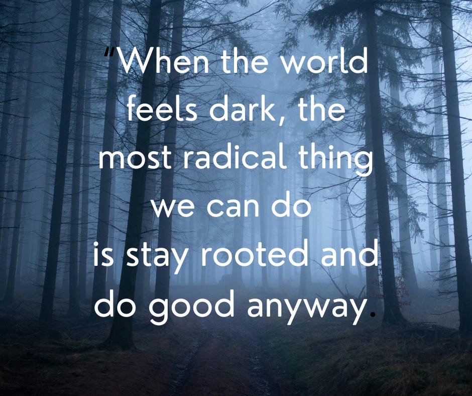 “When the world feels dark, the most radical thing we can do is stay rooted and do good anyway.”